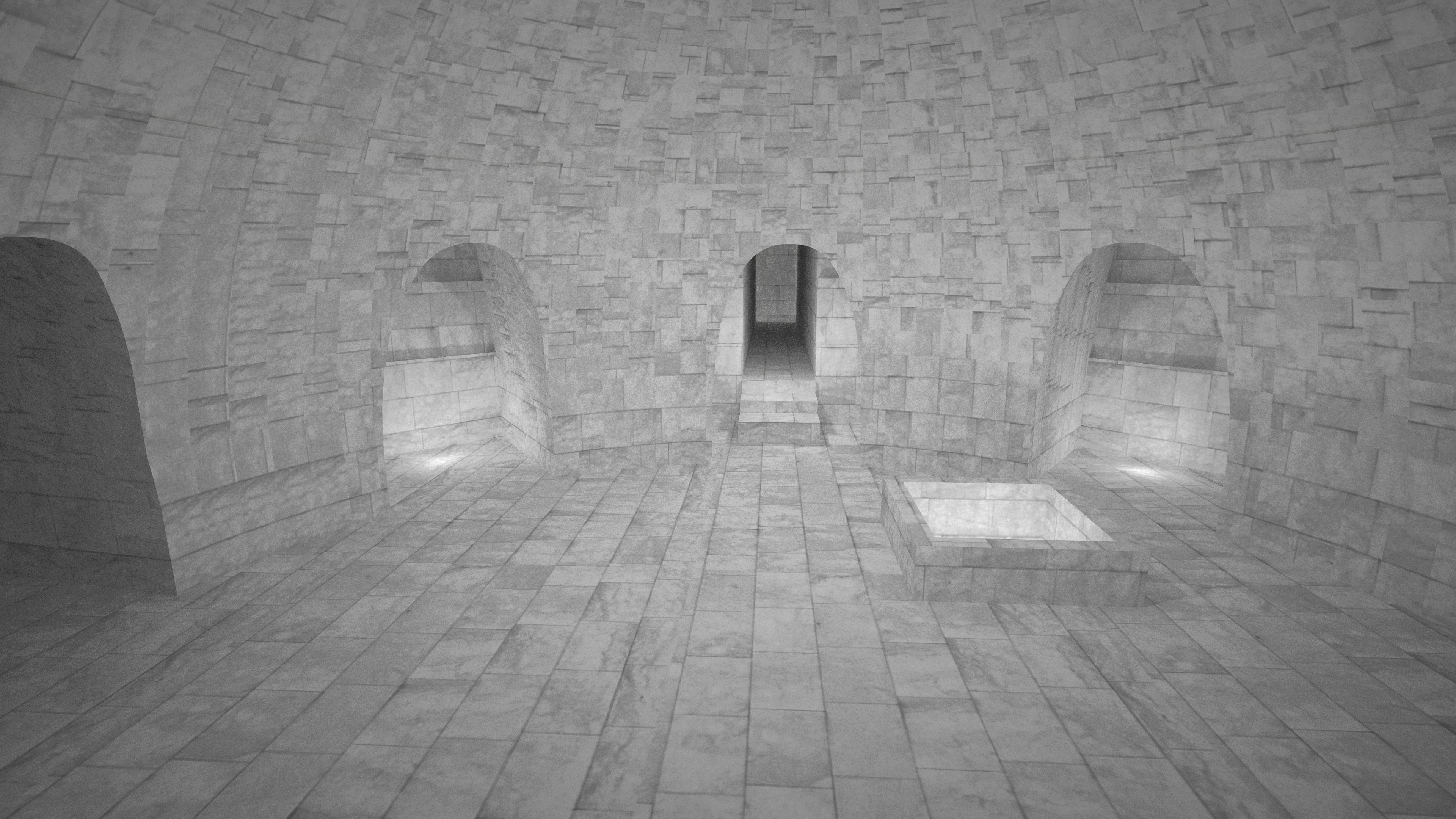 Krypta je polguľového tvaru s ôsmimi výklenkami. V